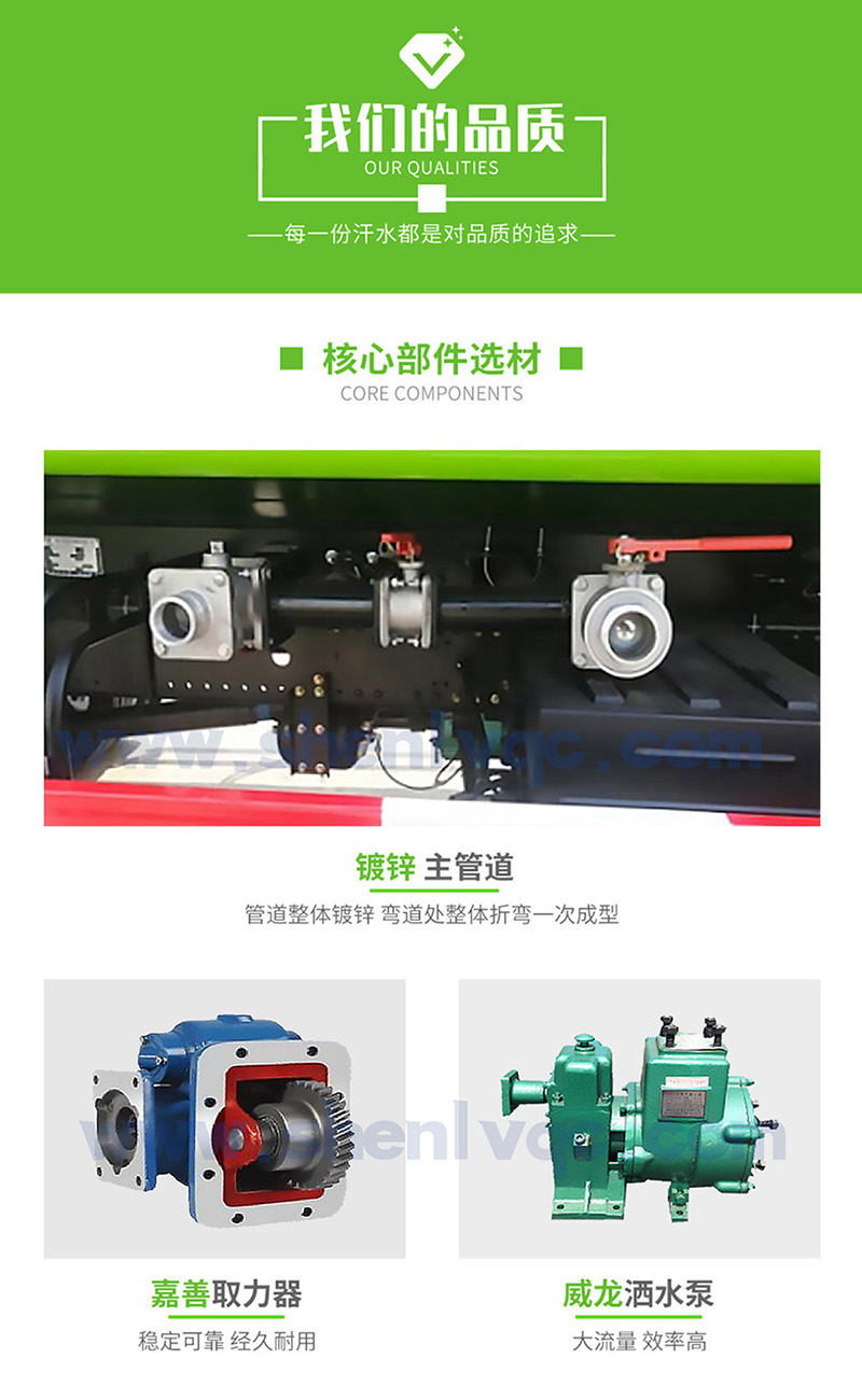 | 標配 | 前沖、后灑、側噴、后平臺高炮、自流閥、消防接頭、濾網、噴頭、帶自吸自排。 | |