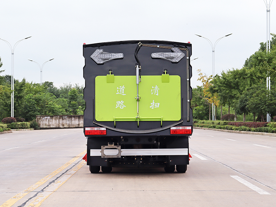 4個中置掃盤,帶3檔調速;江鈴副發動機;大力馬達;施耐德控件開關;臺灣電磁閥組;免維護自分離式離合器;北玻臺信免維護風機;不銹鋼水箱;不銹鋼垃圾箱;尾部LED箭頭燈;手動泵應急系統;刷臂轉動機構使用高新耐磨工程隔套,免打黃油;精密冷彎無縫液壓油管。